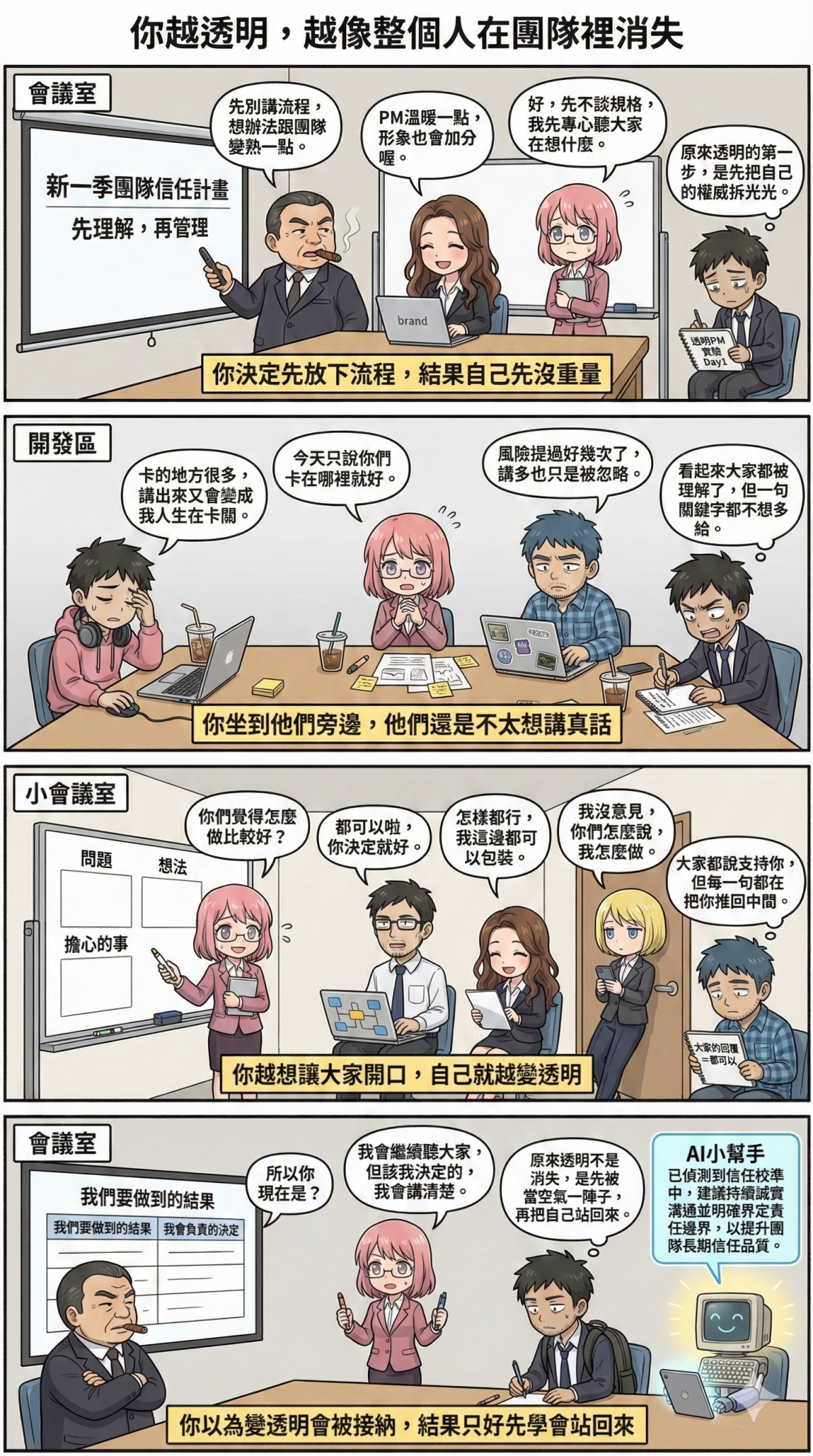 腦中不斷重播那些開會時的表情、語氣、沉默。